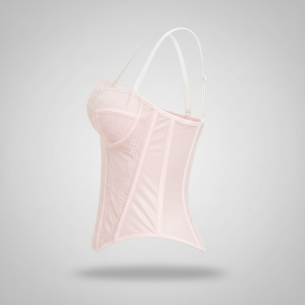 Lace Corset Bustier Top in Blush Pink – Supportive Boned Bodice